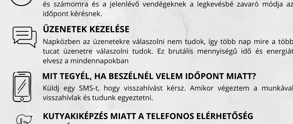 Kedves Gazdik! A Nyíregyházi Szőrmók Állatkozmetikában folyamatosan azon dolgozom, hogy minden kutyus a legnyugodtabb és legprofibb ellátást kapja. Az elmúlt hónapok tapasztalatai alapján azonban szükségessé vált a korábbi házirendünk kiegészítése. Ezek a változtatások nem csak az én munkámat segítik, hanem a Ti kedvenceitek biztonságát, nyugalmát és az időpontok gördülékeny szervezését is. 1. Fókuszban az online […]